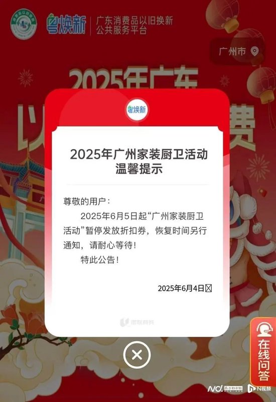 随后,广东部分地市也被曝暂停发放家电类以旧换新补贴,引发关注。
